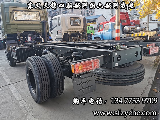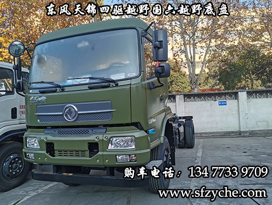 國六排放東風(fēng)天錦四驅(qū)越野底盤正式下線了,東風(fēng)天錦4*4驅(qū)動(dòng)國六越野卡車底盤采用:東風(fēng)天錦D530一排半駕駛室,4×4驅(qū)動(dòng),康明斯B6.2NS6B210國六發(fā)動(dòng)機(jī)210馬力,韶齒六檔變速箱,東風(fēng)商用車橋,前驅(qū)動(dòng)橋3.8噸,后橋10噸,10.00R20輪胎,軸距4500mm/4700mm,電動(dòng)玻璃,方向助力,斷氣剎,ABS,大燈自動(dòng)調(diào)節(jié),自動(dòng)調(diào)整臂,選裝原廠空調(diào)。