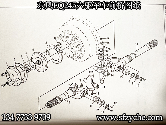 東風(fēng)EQ245六驅(qū)軍車前橋配件圖紙,今天給大家分享一下六驅(qū)245軍車前橋圖紙,方便大家修車,東風(fēng)EQ245退役后大量運(yùn)用于內(nèi)蒙古,青海,新疆等戈壁灘,沙漠使用,為了大家好修車,特此分享。先給大家普及一下EQ245和EQ240的區(qū)別,EQ245采用12R20越野輪胎,輪胎螺絲為8孔,常稱大炮車,車廂尺寸4.2米。EQ240采用11R18越野輪胎,輪胎螺絲6孔,車廂3.5米,常稱小炮車,有不懂的朋友隨時(shí)聯(lián)系。