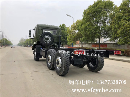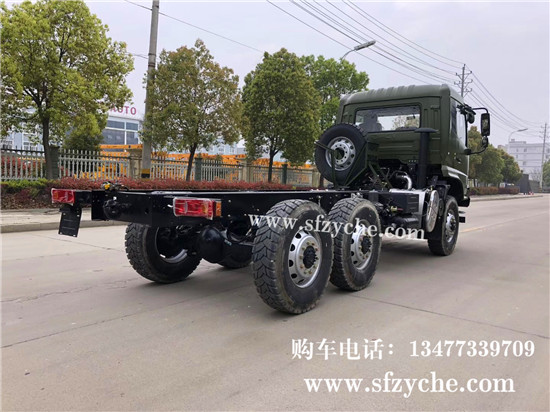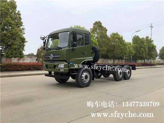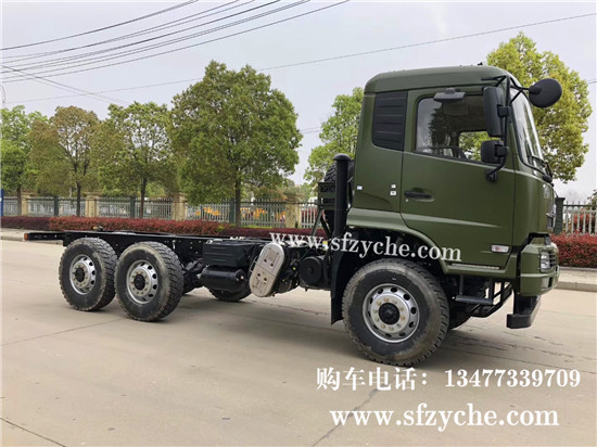 國六排放東風天錦六驅越野底盤配置,東風天錦D530一排半駕駛室,6×6驅動,康明斯B6.2NS6B210國六發(fā)動機210馬力,最大扭矩:850N.m/1100-1700rpm,排量6.2L、韶齒手動六檔變速箱,東風德納車橋,前驅動橋5噸雙聯(lián)半軸結構,中后橋都為軍工德納5噸驅動橋,315/80R22.5大花紋越野輪胎,280mm雙層大梁,軸距3500+1250mm,電動玻璃,方向助力,斷氣剎,ABS,大燈自動調節(jié),自動調整臂,原廠空調。車架可利用尺寸5000mm。