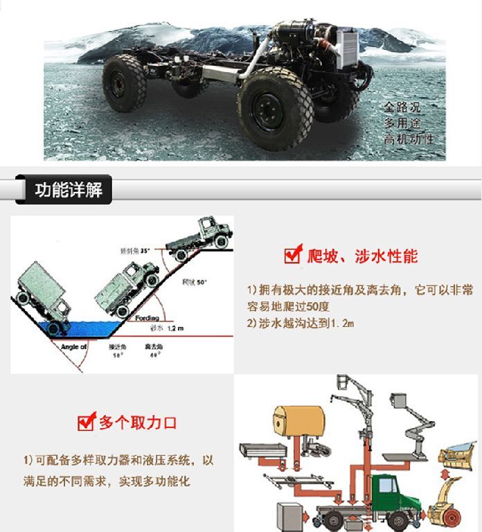 可選涉水深度:1200mm 可選150A發(fā)電機(jī)